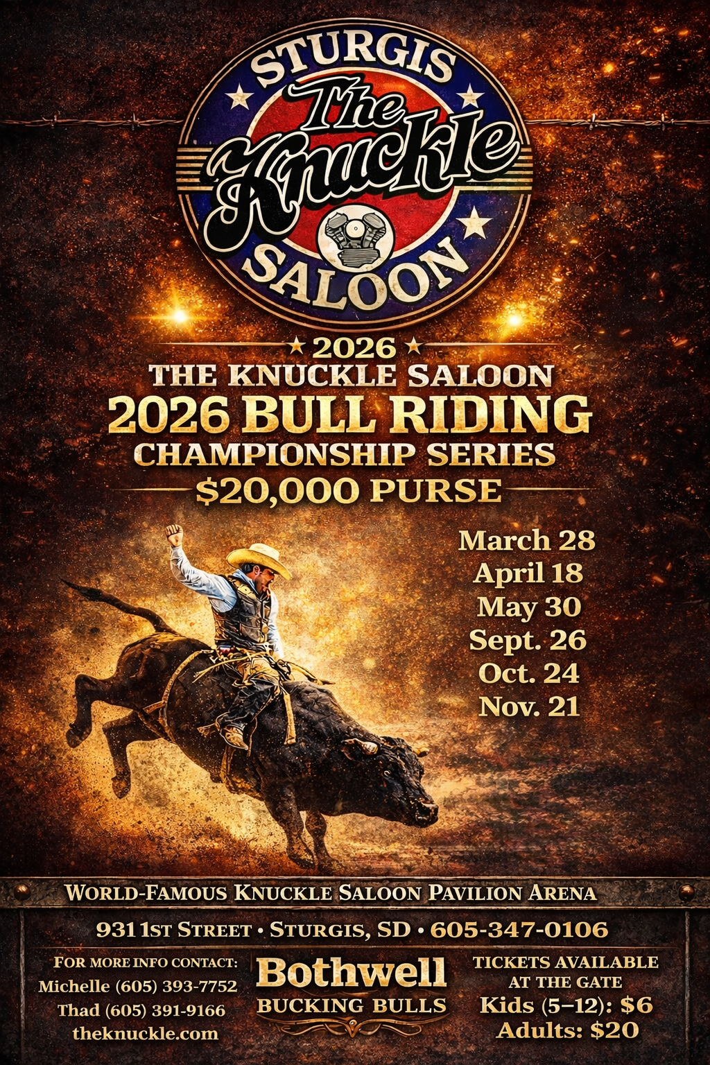 IT’S OFFICIAL — FIRST BULL RIDING OF 2026! Sturgis… y’all waited long enough. The Knuckle Saloon + Bothwell Bucking Bulls are kicking off the FIRST bull riding event of 2026 […]